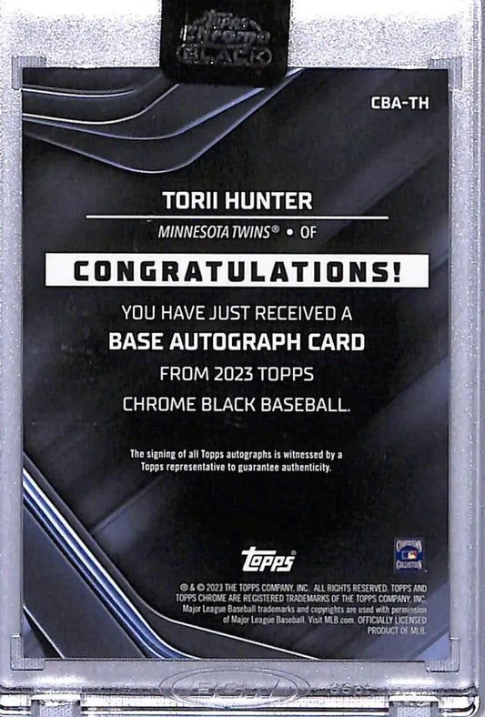 2023 Topps Chrome Black #CBATH Torii Hunter NM-MT Auto 133/150 Minnesota Twins Baseball Card