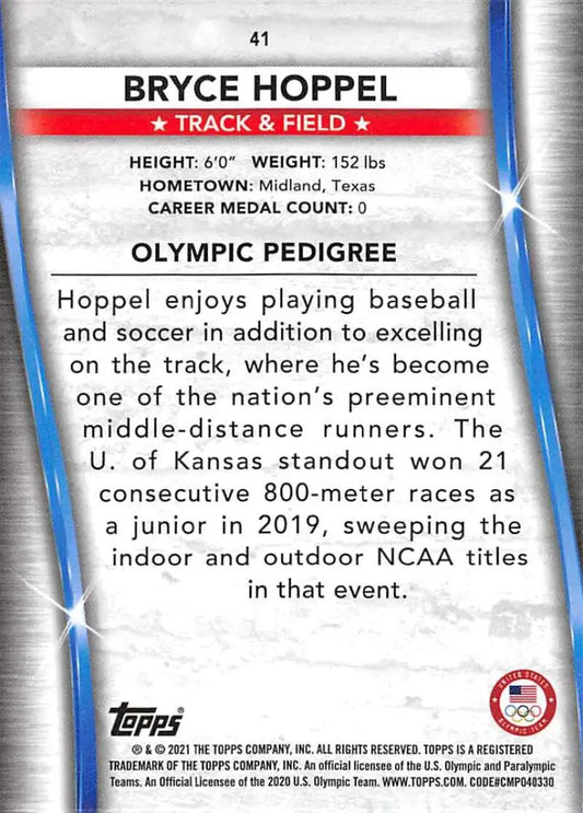 2021 Topps US Olympics and Paralympics Team Hopefuls NM-MT #41 Bryce Hoppel Track & Field Card