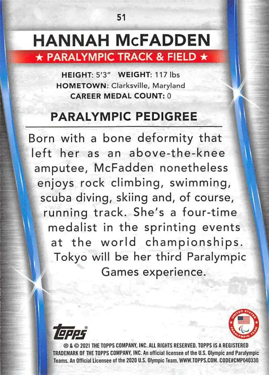 2021 Topps US Olympics and Paralympics Team Hopefuls NM-MT #51 Hannah McFadden Paralympic Track & Field Card