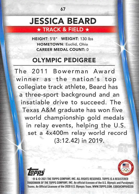 2021 Topps US Olympics and Paralympics Team Hopefuls NM-MT #67 Jessica Beard Track & Field Card