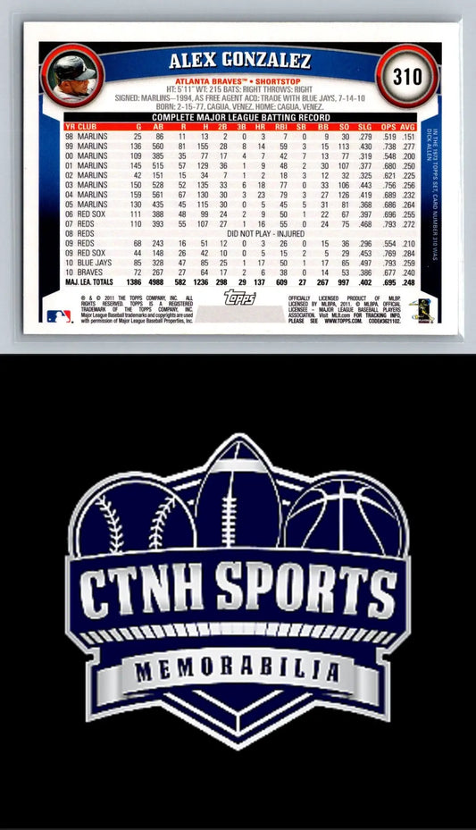2011 Topps #310 Alex Gonzalez Diamond Anniversary Atlanta Braves