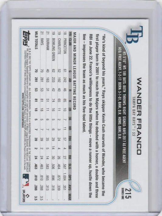 2022 Topps #215 Wander Franco Tampa Bay Rays