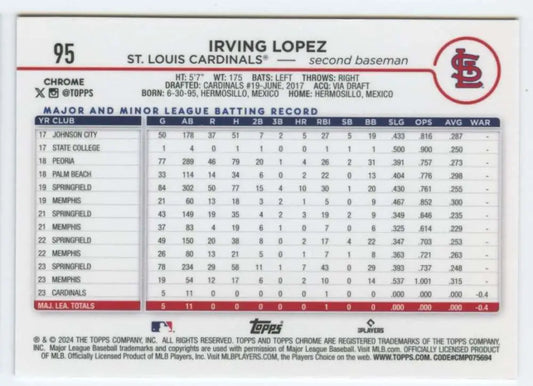 2024 Topps Chrome #95 Irving Lopez NM-MT RC Rookie St Louis Cardinals Baseball Card