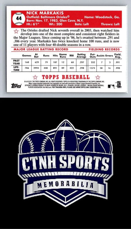 2011 Topps #44 Nick Markakis Black Diamond Baltimore Orioles