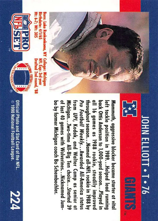 1990 Pro Set #224 John Elliott NM-MT New York Giants Football Card