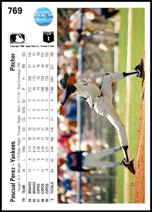 1990 Upper Deck #769 Pascual Perez NM-MT New York Yankees Baseball Card