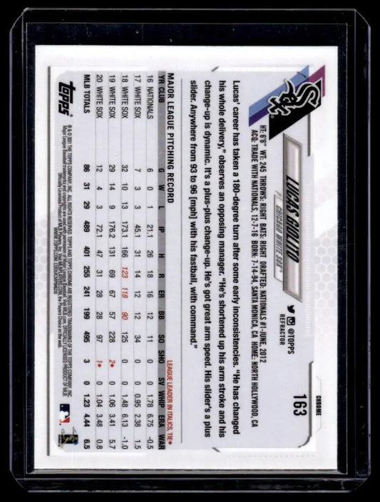 2021 Topps Chrome Refractor #163 Lucas Giolito NM/MT Chicago White Sox Baseball Card