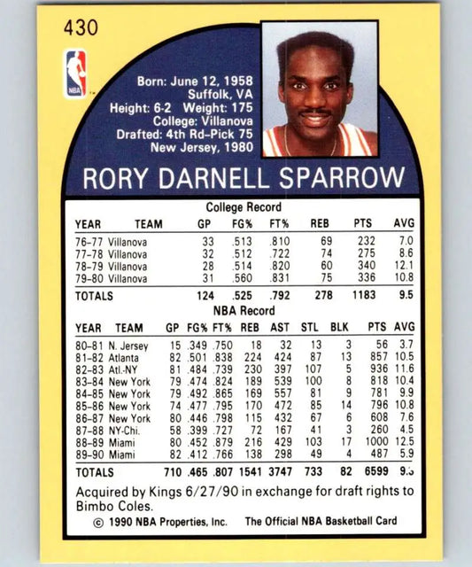 1990-91 Hoops #430 Rory Sparrow NM-MT Sacramento Kings Basketball Card