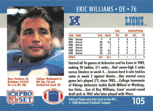 1990 Pro Set #105 Eric Williams NM-MT RC Rookie Detroit Lions Football Card