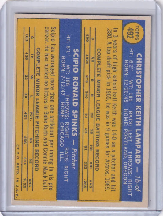 1970 Topps Baseball #492 Astros Rookies - Keith Lampard / Scipio Spinks RC