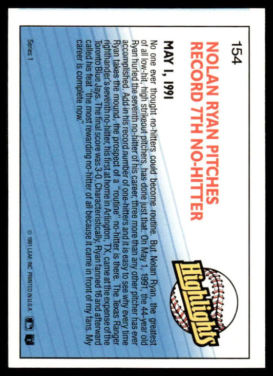 1992 Donruss #154 Nolan Ryan EX/NM Texas Rangers Baseball Card