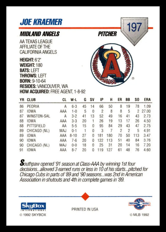 1992 Skybox AA #197 Joe Kraemer Midland Angels NM-MT Baseball Card