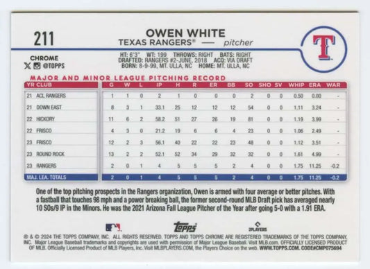 2024 Topps Chrome #211 Owen White NM-MT RC Rookie Texas Rangers Baseball Card