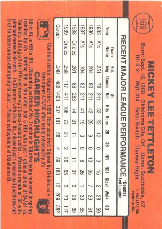1990 Donruss #169 Mickey Tettleton VG-EX Baltimore Orioles Baseball Card