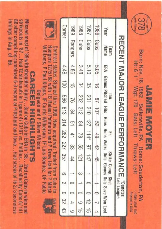 1990 Donruss #378 Jamie Moyer VG-EX Texas Rangers Baseball Card