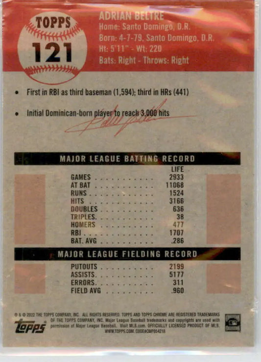 2022 Topps Chrome Platinum Anniversary #121 Adrian Beltre NM-MT Texas Rangers Baseball Card
