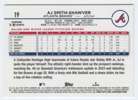 2024 Topps Chrome #19 AJ Smith-Shawver NM-MT RC Rookie Atlanta Braves Baseball Card