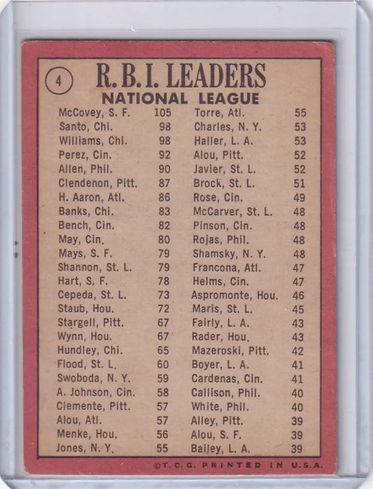 1969 Topps Baseball #4 N.L. 1968 RBI Leaders - Willie McCovey / Santo /Williams