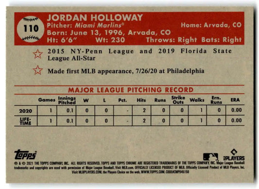 2021 Topps Chrome Platinum Anniversary #110 Jordan Holloway NM-MT RC Rookie Miami Marlins Baseball Card
