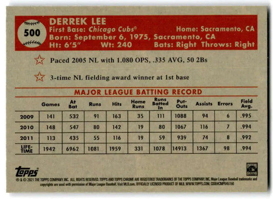 2021 Topps Chrome Platinum Anniversary #500 Derrek Lee NM-MT Chicago Cubs Baseball Card