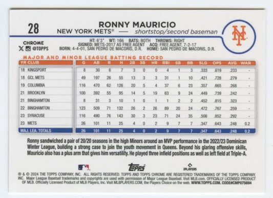 2024 Topps Chrome #28 Ronny Mauricio NM-MT RC Rookie New York Mets Baseball Card