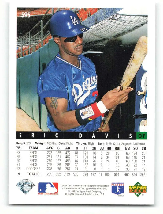 1993 Upper Deck #595 Eric Davis VG Los Angeles Dodgers Baseball Card