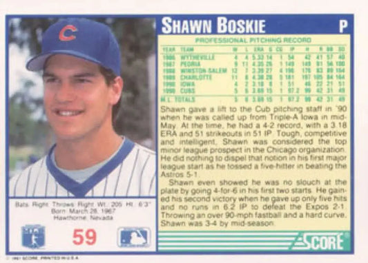 1991 Score #59 Shawn Boskie NM-MT Chicago Cubs Baseball Card