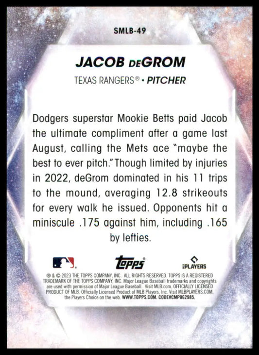 Jacob deGrom 2023 Topps Stars of MLB #SMLB-49 Texas Rangers