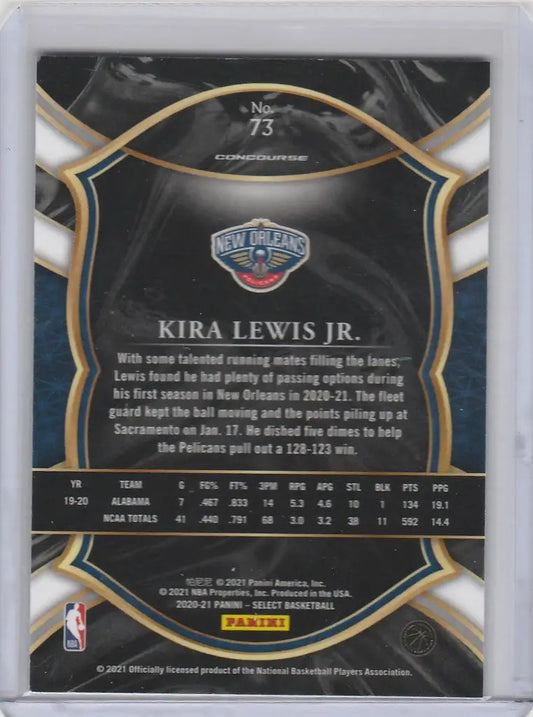 2020-21 Panini Select Blue #73 Kira Lewis Jr New Orleans Pelicans