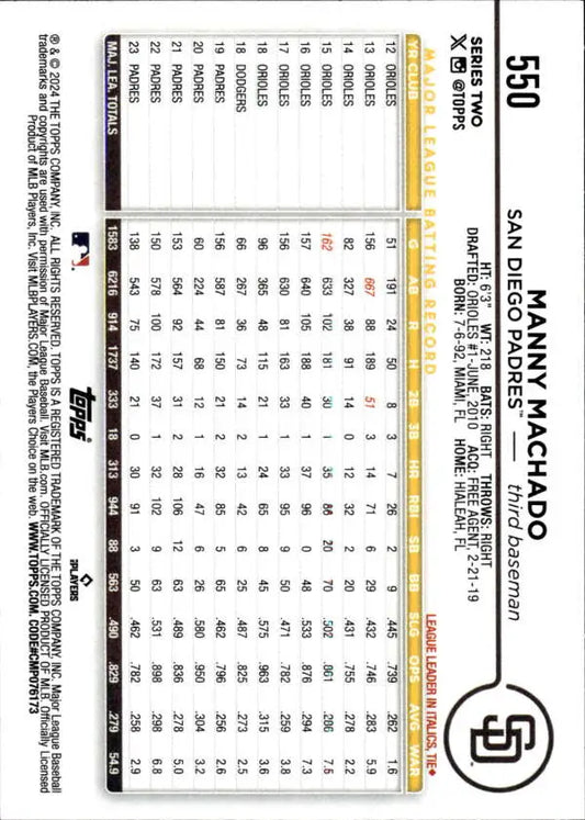 2024 Topps #550 Manny Machado NM-MT San Diego Padres Baseball Card