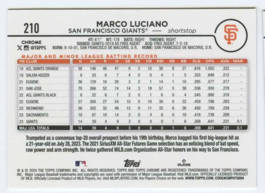 2024 Topps Chrome #210 Marco Luciano NM-MT RC Rookie San Francisco Giants Baseball Card