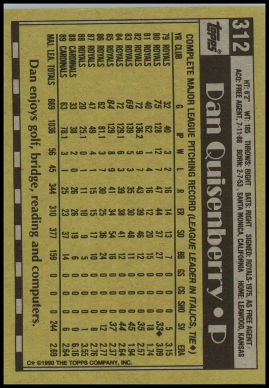 1990 Topps #312 Dan Quisenberry NM-MT St. Louis Cardinals Baseball Card
