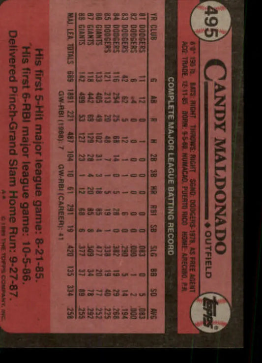 1989 Topps #495 Candy Maldonado NM-MT San Francisco Giants Baseball Card