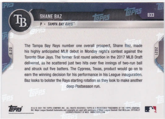 2021 TOPPS NOW #833 SHANE BAZ- TAMPA BAY RAYS