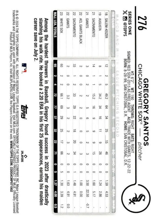 2024 Topps #276 Gregory Santos NM-MT Chicago White Sox Baseball Card