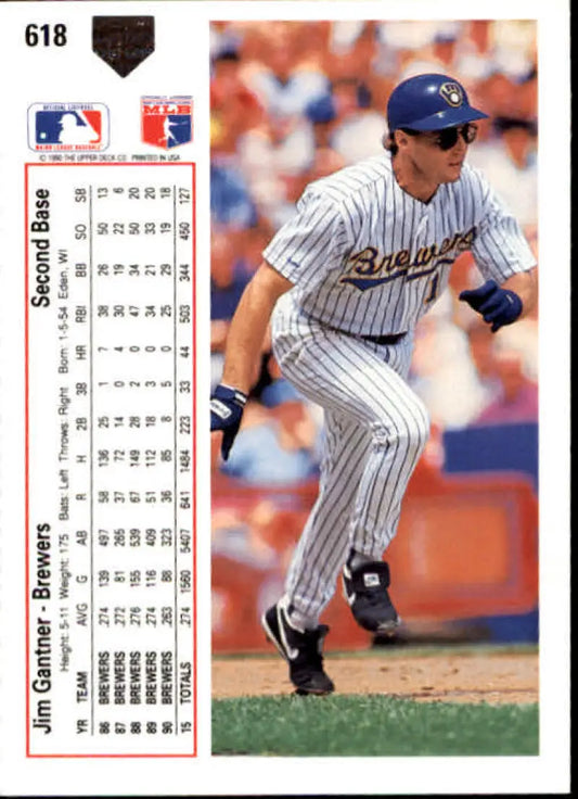 1991 Upper Deck #618 Jim Gantner NM-MT Milwaukee Brewers Baseball Card