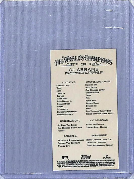 2022 Topps Allen and Ginter Chrome Mini Refractor #218 CJ Abrams NM-MT RC Rookie Washington Nationals Baseball Card