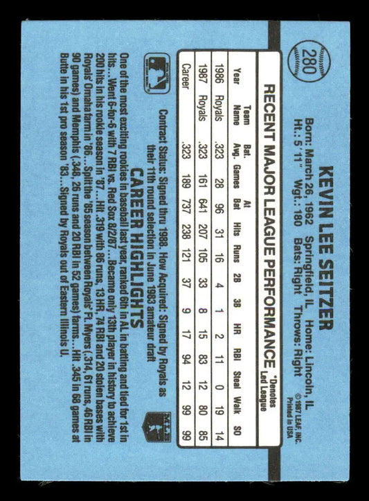 1988 Donruss #280 Kevin Seitzer EX Kansas City Royals Baseball Card