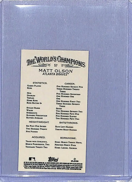 2022 Topps Allen and Ginter Chrome Mini Refractor #57 Matt Olson NM-MT Atlanta Braves Baseball Card
