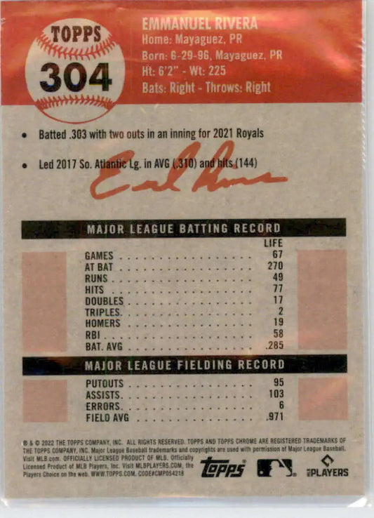 2022 Topps Chrome Platinum Anniversary #304 Emmanuel Rivera NM-MT RC Rookie Kansas City Royals Baseball Card