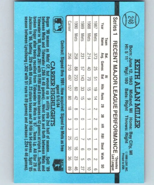 1991 Donruss #248 Keith Miller NM-MT New York Mets Baseball Card