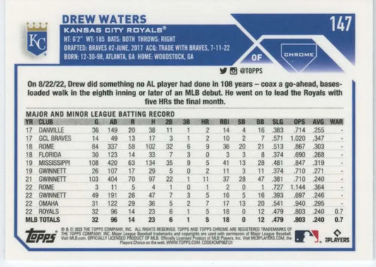 2023 Topps Chrome #147 Drew Waters NM-MT RC Rookie Kansas City Royals Baseball Card