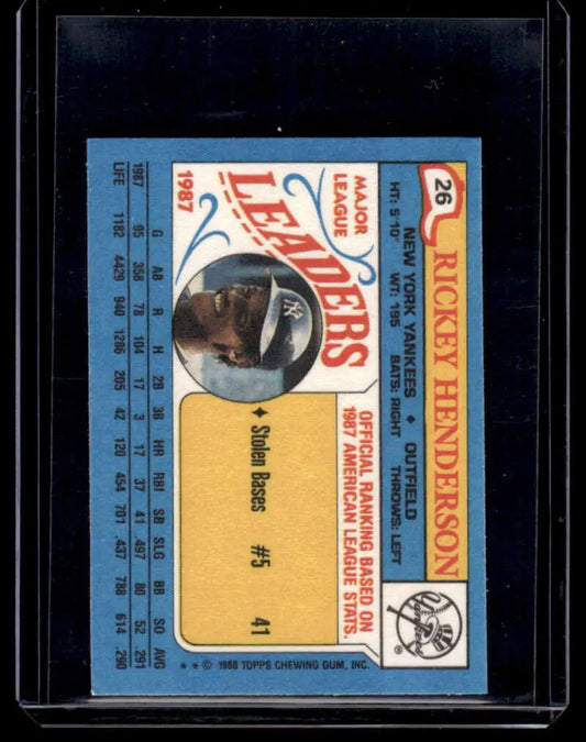 1988 Topps Major League Leaders Minis #26 Rickey Henderson New York Yankees NM-MT