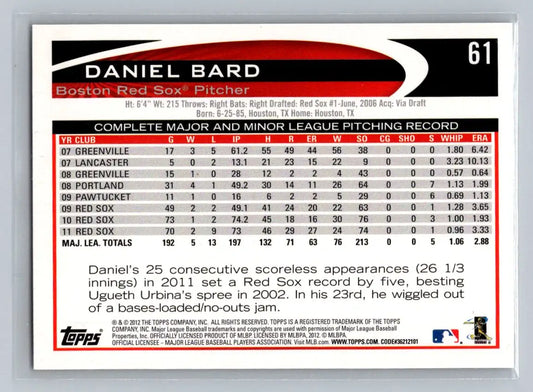 2012 Topps #61a Daniel Bard Boston Red Sox