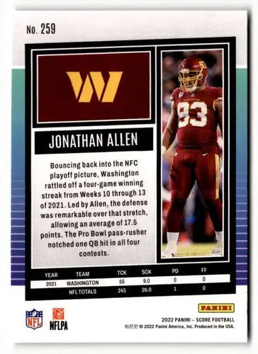 2022 Score #259 Jonathan Allen NrMt-Mt ID:51027
