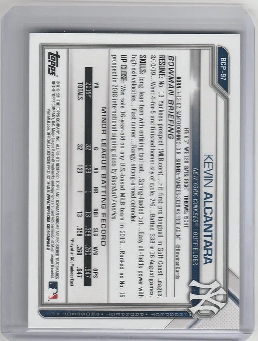 2021 Bowman Chrome #BCP-97 Kevin Alcantara New York Yankees