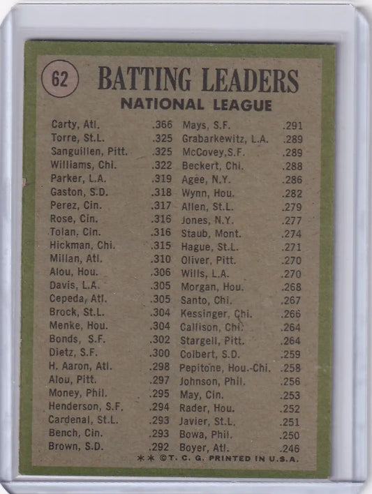 1971 Topps Baseball #62 NL 1970 Batting Leaders - Carty / Torre / Sanguillen