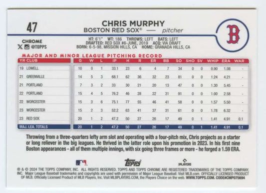 2024 Topps Chrome #47 Chris Murphy NM-MT RC Rookie Boston Red Sox Baseball Card