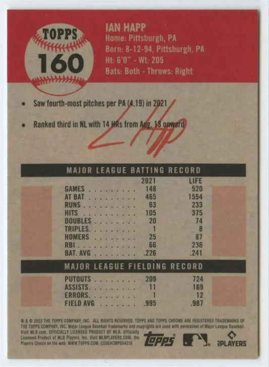 2022 Topps Chrome Platinum Anniversary #160 Ian Happ NM-MT Chicago Cubs Baseball Card