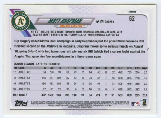 2021 Topps Chrome #62 Matt Chapman NM-MT Oakland Athletics Baseball Card